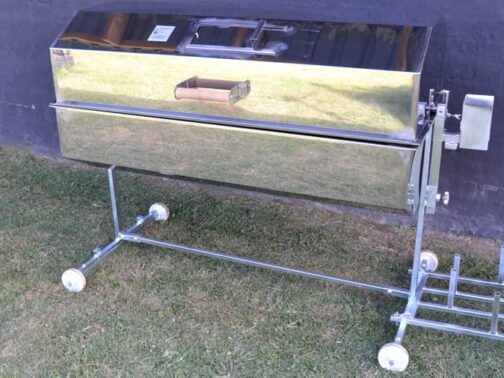This ultimate in gas spit braais, a three-burner machine made from top-grade stainless steel gives you the best cooking results. Designed to be simplistic and easy to use, it is quick to set up and easily spit a carcase up to 30kg, leg of lamb or rolled meat up to 40kg. Utilising the bottom of the braai to add veg and more as sides, ensure catering master chef style. Cleaning is a breeze due to the high-quality finish and a handy plug, in the bottom bay. This is a versatile and reliable outdoor/indoor Gas Oven Spit Braai. This gas Spit comes with 2 leg hoops and 2 clamp plates with 2 U-bolts to tie the carcase to your spit bar. Also included is 1 double spike, with the fork setup of the clamp plates allowing the easy spit braaing of a leg of lamb or rolled meat close to the spit bar. The heart of the spit braai is a 50Mhz, 0.47amp 220v motor within a heat-protective box.